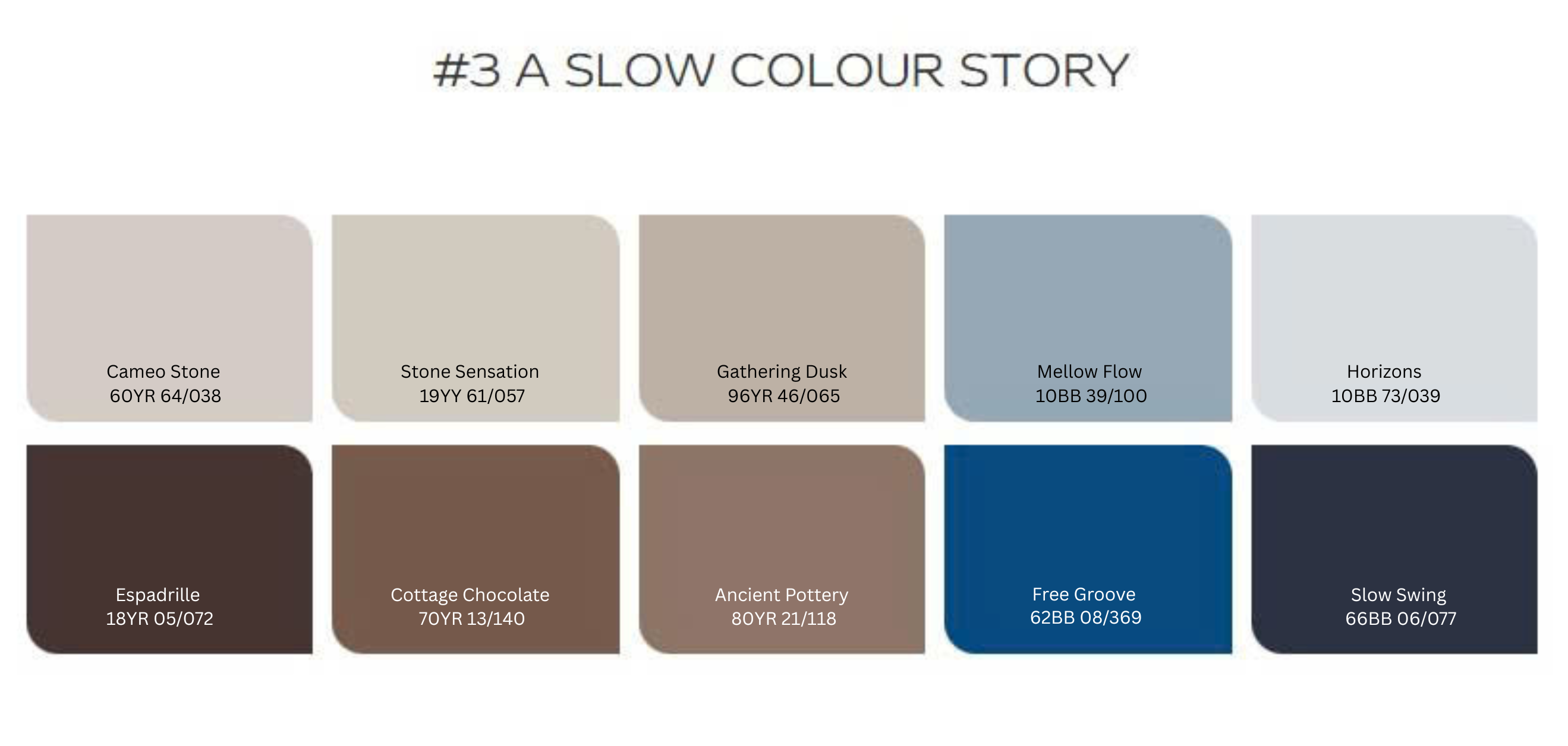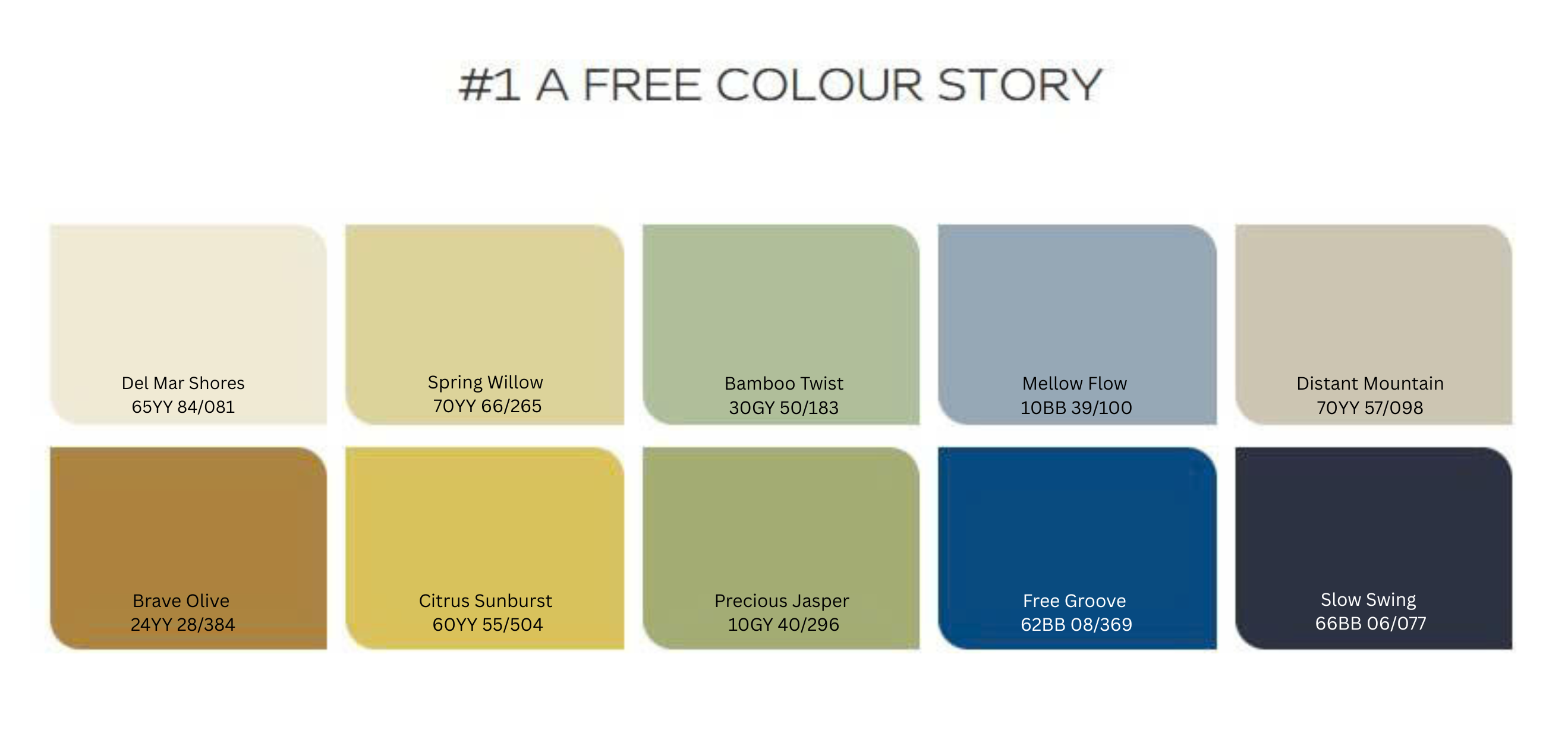 Chỉ với Sắc xanh nhưng bộ ba gam màu chủ đạo mang đến nguồn cảm hứng đa dạng để biến hóa không gian sống: sắc Free Groove™ rực rỡ, gam Mellow Flow™ nhẹ nhàng, và màu Slow Swing™ trầm lắng.